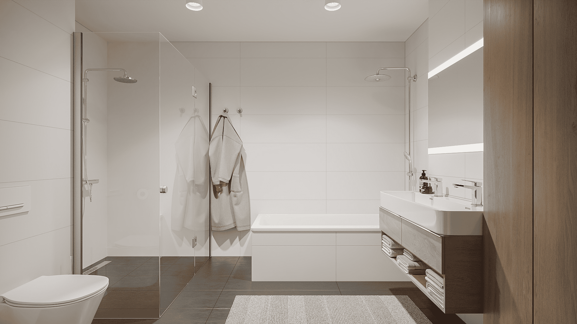 Das energiesparende Fußbodenheizungssystem unserer Eigentumswohnungen sorgt nicht nur für wohlige Wärme an kälteren Tagen. Dank intelligenter Change-Over-Schaltung kann es zur Kühlung der Wohnung genutzt werden, wenn die Temperaturen steigen. So bleibt das Raumklima auch an heißen Tagen stabil und komfortabel – und das völlig geräuschlos.